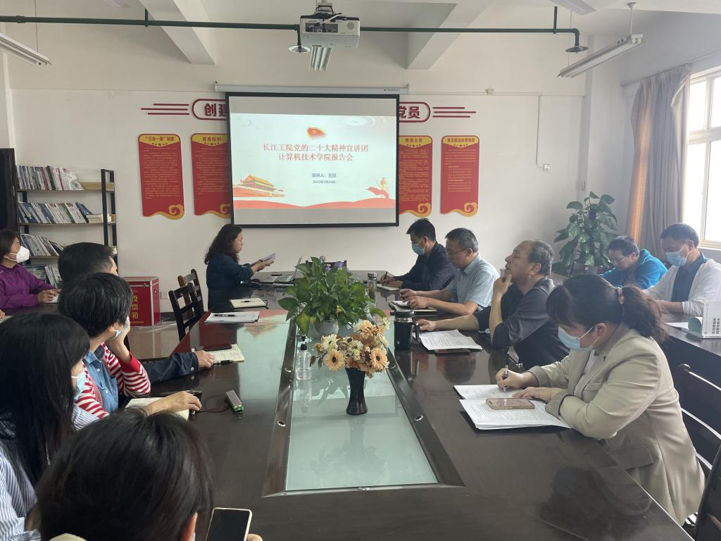 5月24日下午,计算机技术学院在长江楼736会议室开展主题教育学习,学校宣讲团成员王珏宣讲党的二十大精神。学院领导班子、党支部书记、辅导员、全体教师参加了此次学习。会议由汪吉平主持。
