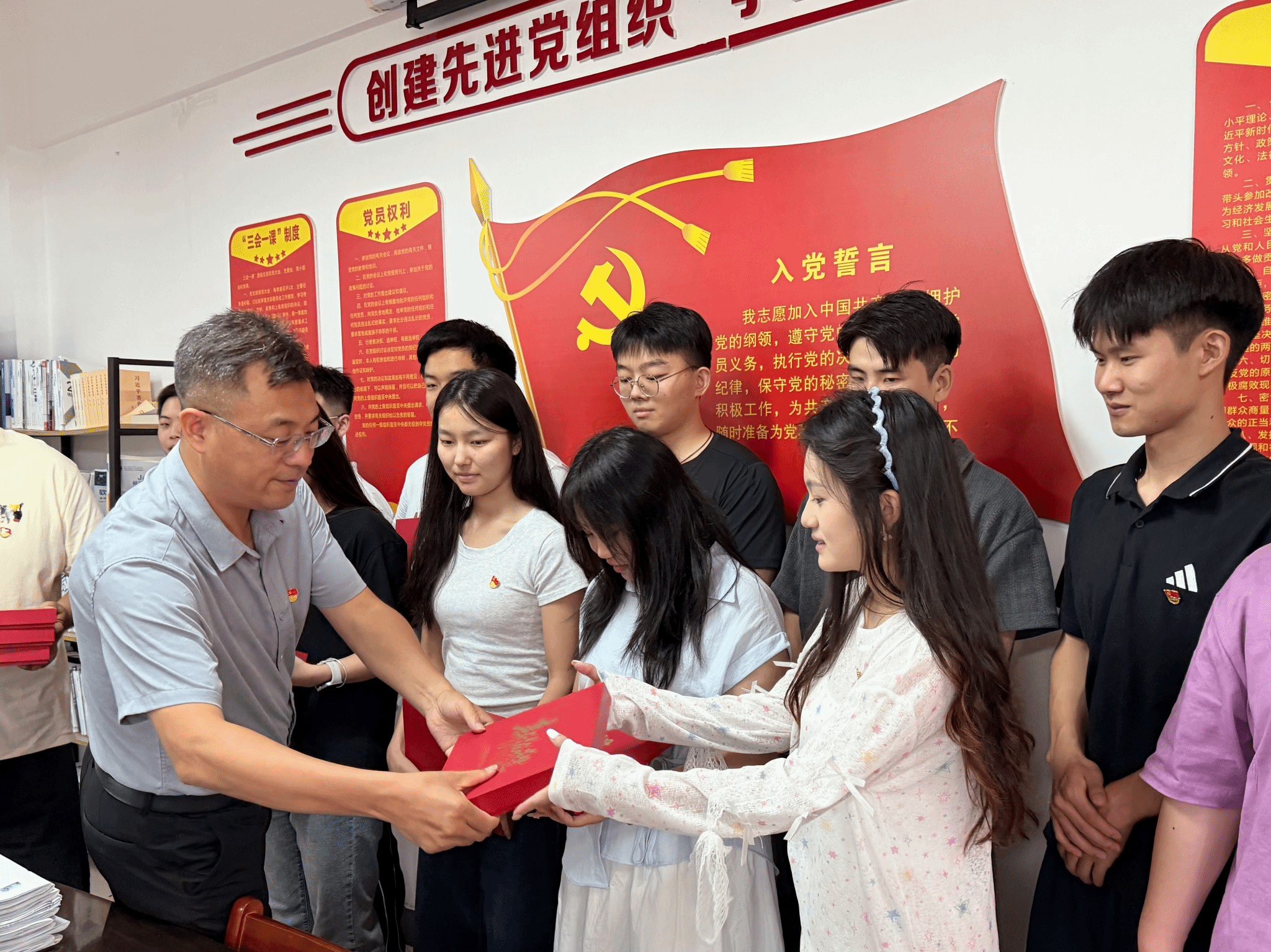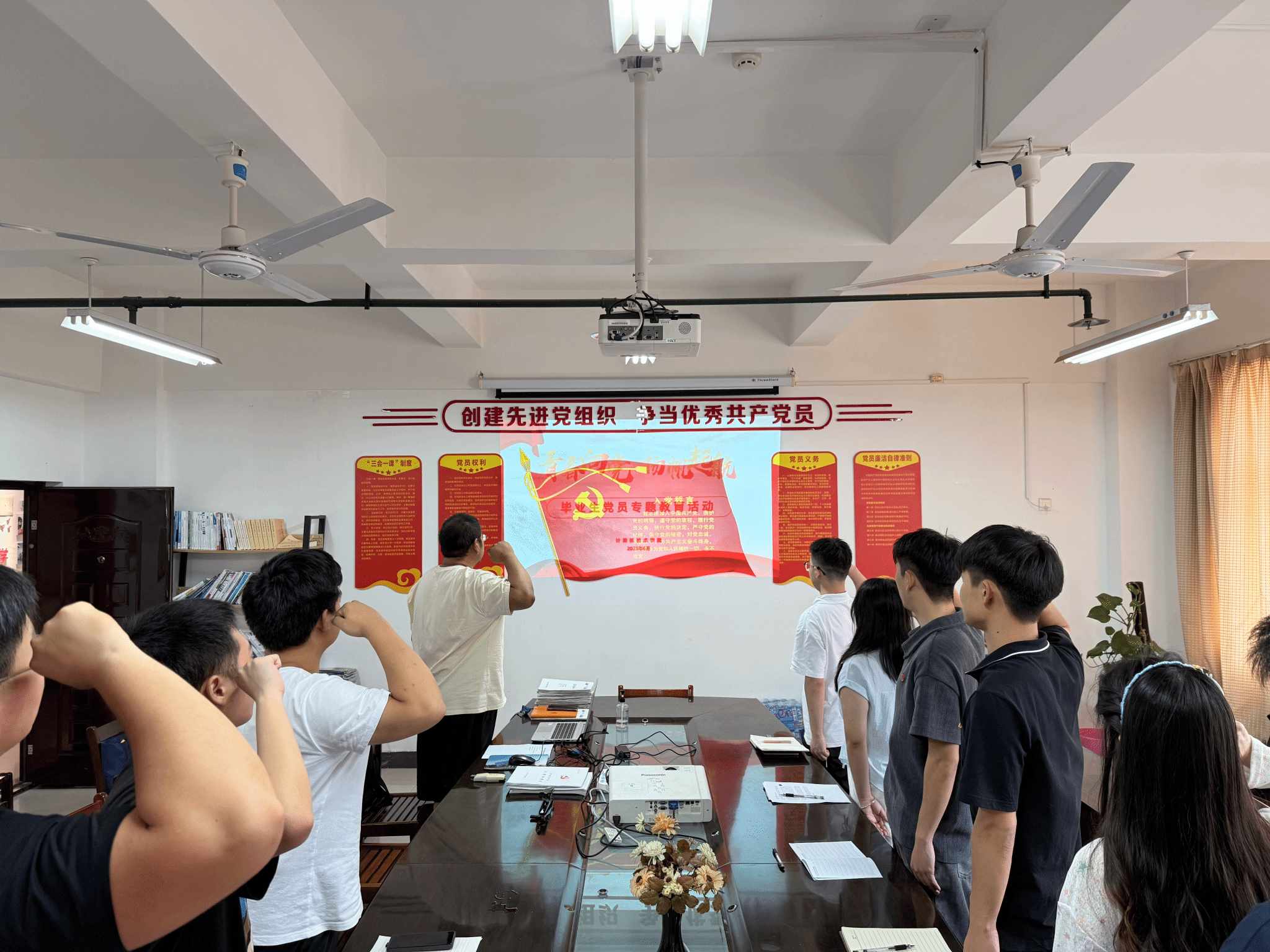 活动伊始,全体党员齐唱国歌,重温入党誓词。