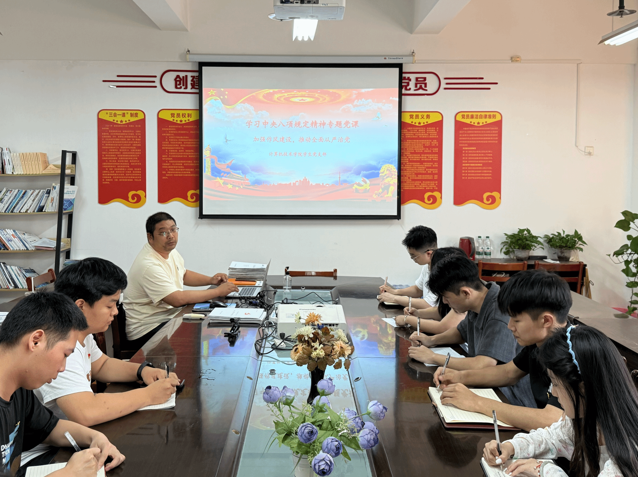 陈雄以《加强作风建设 推动全面从严治党》为题,讲授深入贯彻中央八项规定精神学习教育专题党课,系统阐述了中央八项规定精神的重大意义、核心要义和实践要求。他指出,毕业生党员即将步入社会或继续深造,必须时刻绷紧纪律规矩这根弦,永葆共产党员的先进性和纯洁性,以清正廉洁、务实担当的作风,在未来的岗位上展现党员风采。