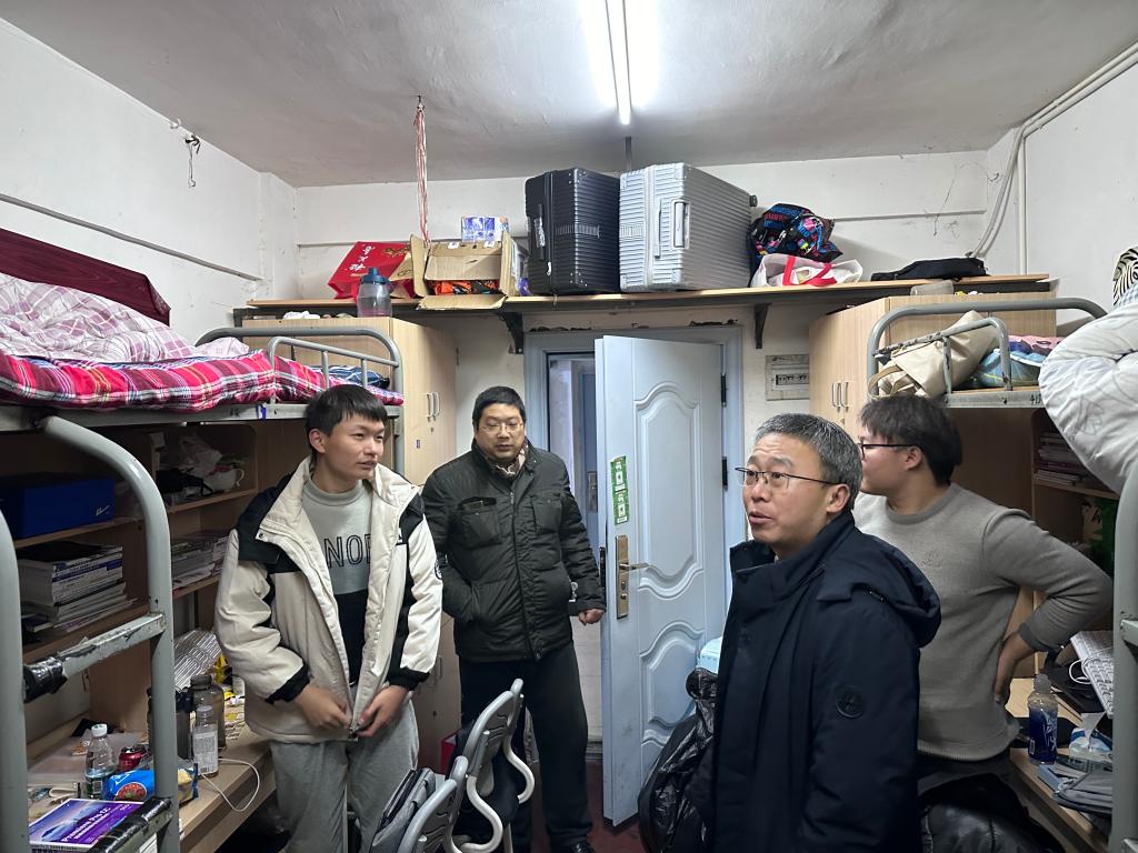 走访过程中,汪吉平走进多间宿舍,详细询问同学们假期情况,慰问关心同学们返校后的生活,表达了学院对同学们的亲切关怀,并叮嘱同学们要进一步提升安全意识,严格遵守安全用电规定;要重视个人卫生,做好宿舍卫生保洁,及时清理垃圾,养成良好的生活习惯,共同营造安全、舒适、温馨的宿舍环境。