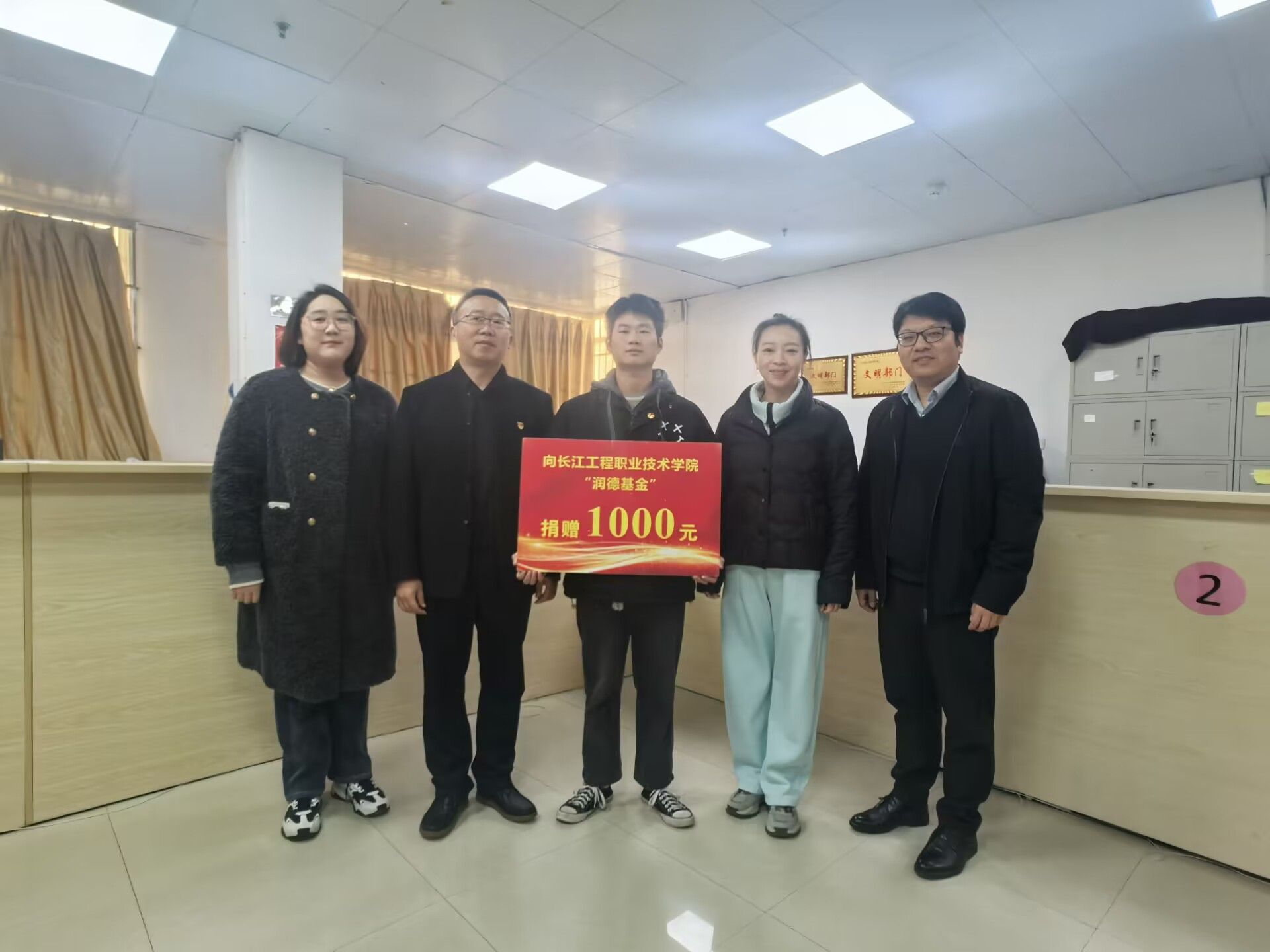 1220日,计算机技术学院2023-2024年国家奖学金获得者张源向学校“润德基金”捐款1000元,用于帮助家庭困难的同学。党委学生工作部部长杨艳、财务处处长裴成超、计算机技术学院党总支书记汪吉平、辅导员石君兰共同为张源颁发捐赠证书。