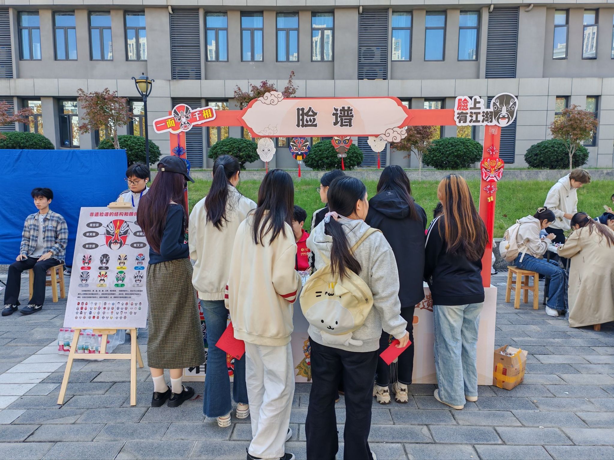 文字游戏盲盒前,同学们凝神思考,时而为答对题目欢呼雀跃;书法漆扇区墨香四溢,一支支毛笔在扇面上游走,留下独具个性的墨宝;剪纸区域巧手翻飞,精美的图案在指尖渐渐成形,引来阵阵赞叹;脸谱绘制区色彩缤纷,同学们专注地调配颜色,勾勒出一个个生动的戏曲人物;AI摄影区排起长队,现代科技与非遗元素的创意结合让每位参与者都收获了独特纪念。每个展位前都洋溢着青春的活力,传统文化的种子在欢声笑语中悄然播撒。