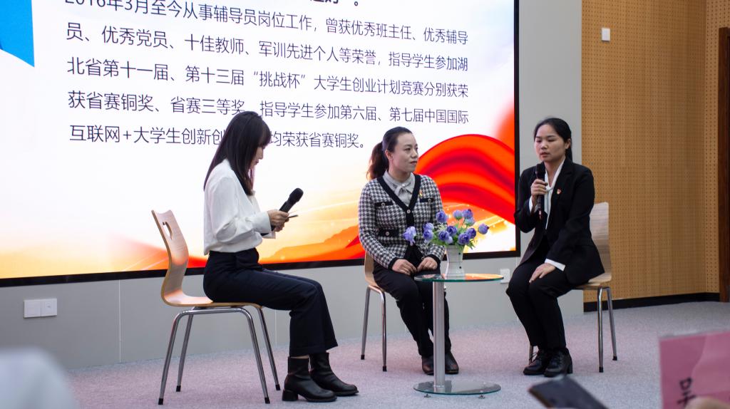 王珏老师是一名奋战16年的资深辅导员,在这个岗位度过了5800多个日夜,带过9届学生。她说与每名学生缔结的深厚情谊是她始终在一线做辅导员的动力。作为近三年来学校辅导员素质能力大赛一等奖获得者,她还分享了参赛经验和方法,鼓励在场师生通过比赛不断加强自身修炼。