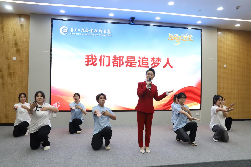 近20名在校生和毕业生以视频的形式为老师们送上真挚的祝福;学生代表为六位优秀的教师献上鲜花表达诚挚的敬意。雷茹老师与学生代表同台演绎《我们都是追梦人》感谢为学校发展默默付出的教师们。