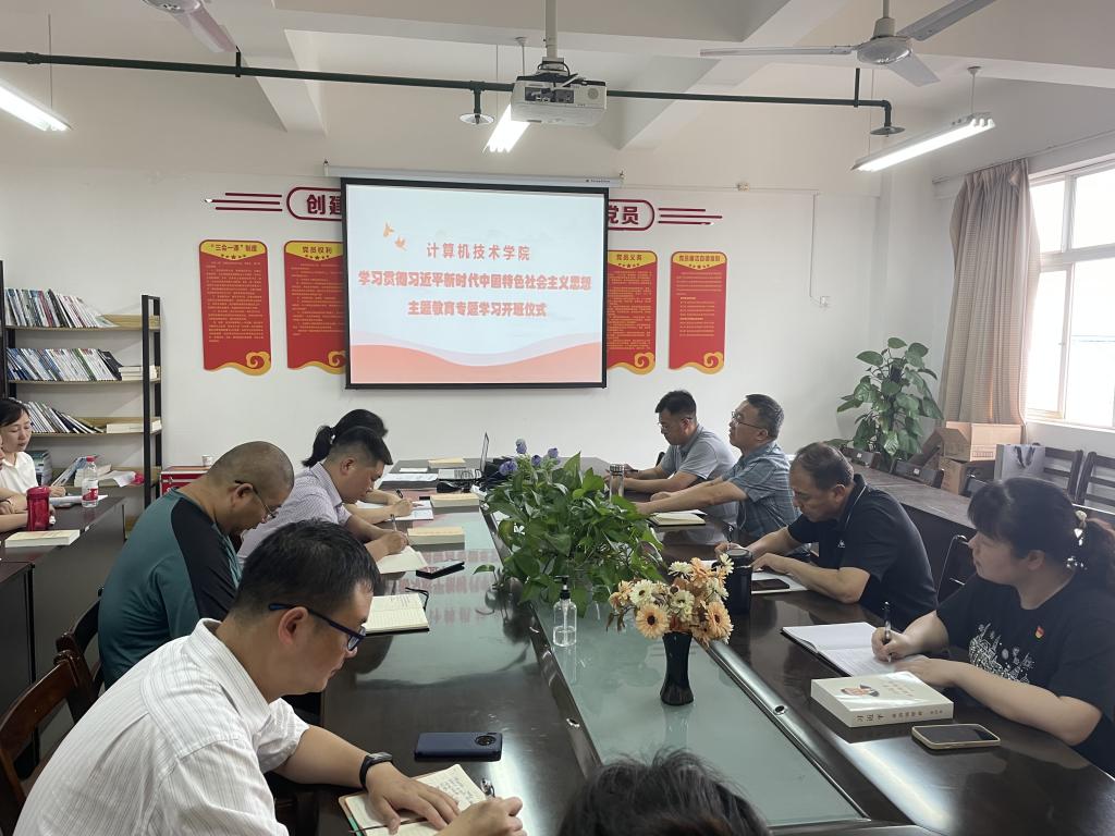 6月19日上午,计算机技术学院在长江楼736会议室举行学习贯彻习近平新时代中国特色社会主义思想主题教育专题学习开班仪式,全体党员参加了开班式,由党总支书记汪吉平主持。