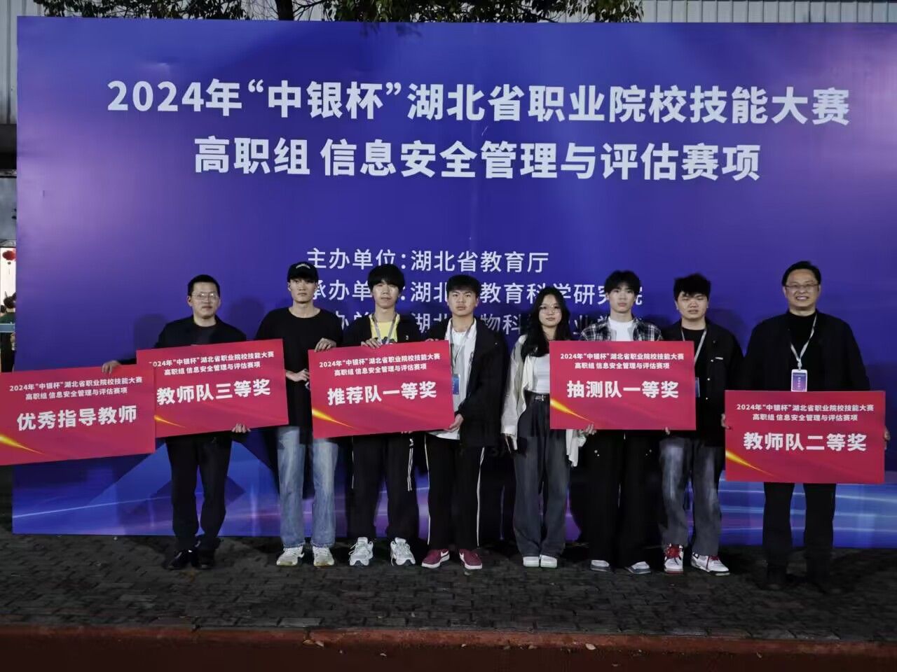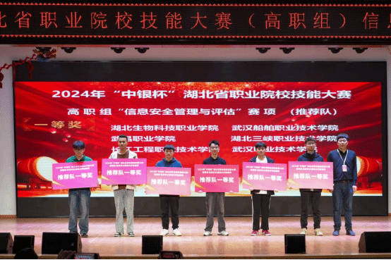 3月23日,“中银杯”湖北省职业院校技能大赛高职组“信息安全管理与评估”赛项在湖北生物科技职业学院正式落下帷幕。来自全省42所高职院校的325名选手参加了此次比赛。经过激烈比拼,我校计算机技术学院许艳杰、段首涛、郭安杰获得推荐队团体一等奖;吴浩然、李龙飞、郑淑雅获得抽测队团体一等奖;陈刚获得教师个人全能赛二等奖,陈荣获得教师个人全能赛三等奖。