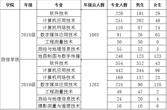 测信学院2021年参加顶岗实习和跟岗实习学生人数统计表