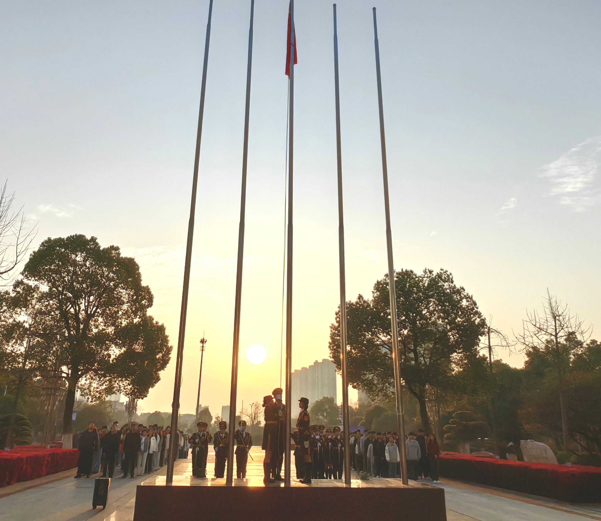 早上七时整,升旗仪式正式开始。全体师生肃立,伴随着雄壮的国歌声,五星红旗冉冉升起,师生们注视着风中飘扬的国旗,心中充满崇敬与自豪。