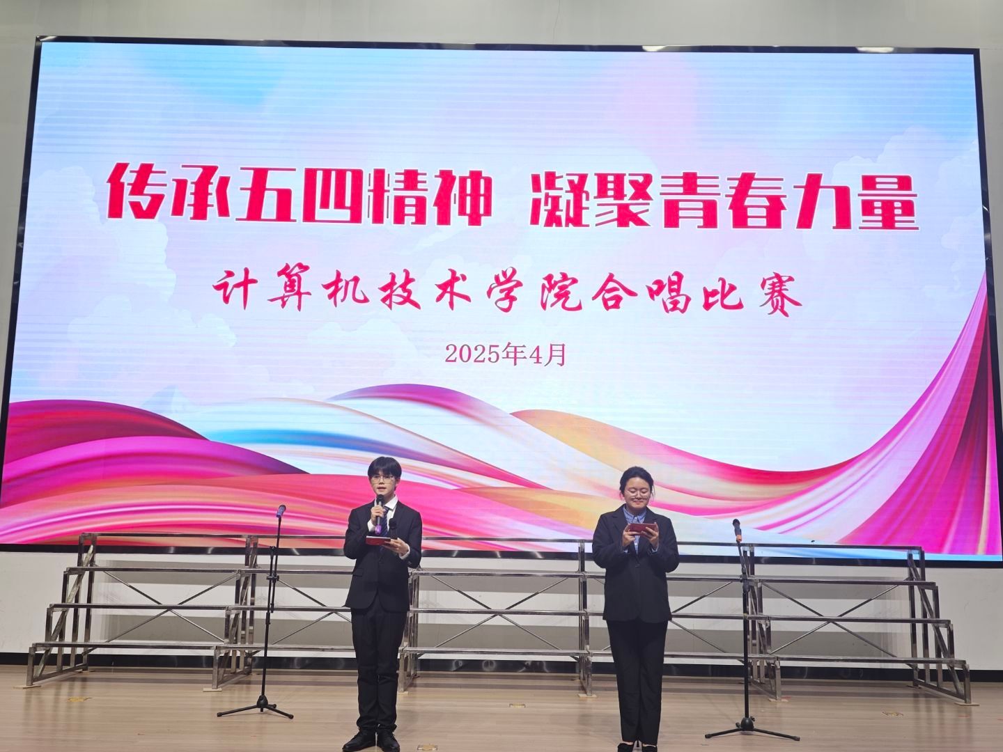 青春之歌激昂回荡,五四精神薪火相传。为纪念五四运动,弘扬爱国主义精神,展现青年学子风采,4月16日,计算机技术学院“传承五四精神 凝聚青春力量”合唱比赛复赛在西江楼问渠厅举行。本次活动由学院团委主办,经过初赛激烈角逐,最终8个班级脱颖而出,晋级复赛。