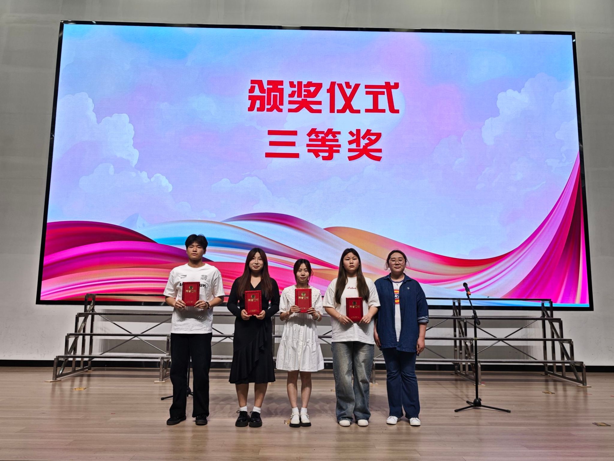 比赛现场,各参赛班级以饱满的热情和精湛的表演,将一首首经典歌曲演绎得淋漓尽致。软件2403班深情演唱《如愿》,用婉转的歌声表达对先辈的感恩与对祖国繁荣昌盛的美好祝愿;数媒2402班带来的《和你一样》,以温暖的旋律唱响青春同行、携手奋进的坚定信念;大数据2401班气势磅礴的《强军战歌》,展现了新时代青年保家卫国的豪情壮志。经过评委评选,最终获奖名单如下: