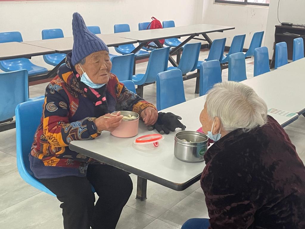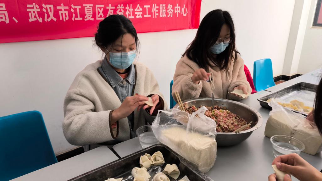 餐厅里,大家分工有序、配合默契,和面、擀皮、包馅,同学们和老人一边聊着家常一边包着饺子,有说有笑,现场气氛融洽。在一片欢声笑语中,一张张面皮包裹着馅儿,在大家的手中变成了圆鼓鼓的饺子。福利院里处处洋溢着“家”的味道、“家”的温馨。