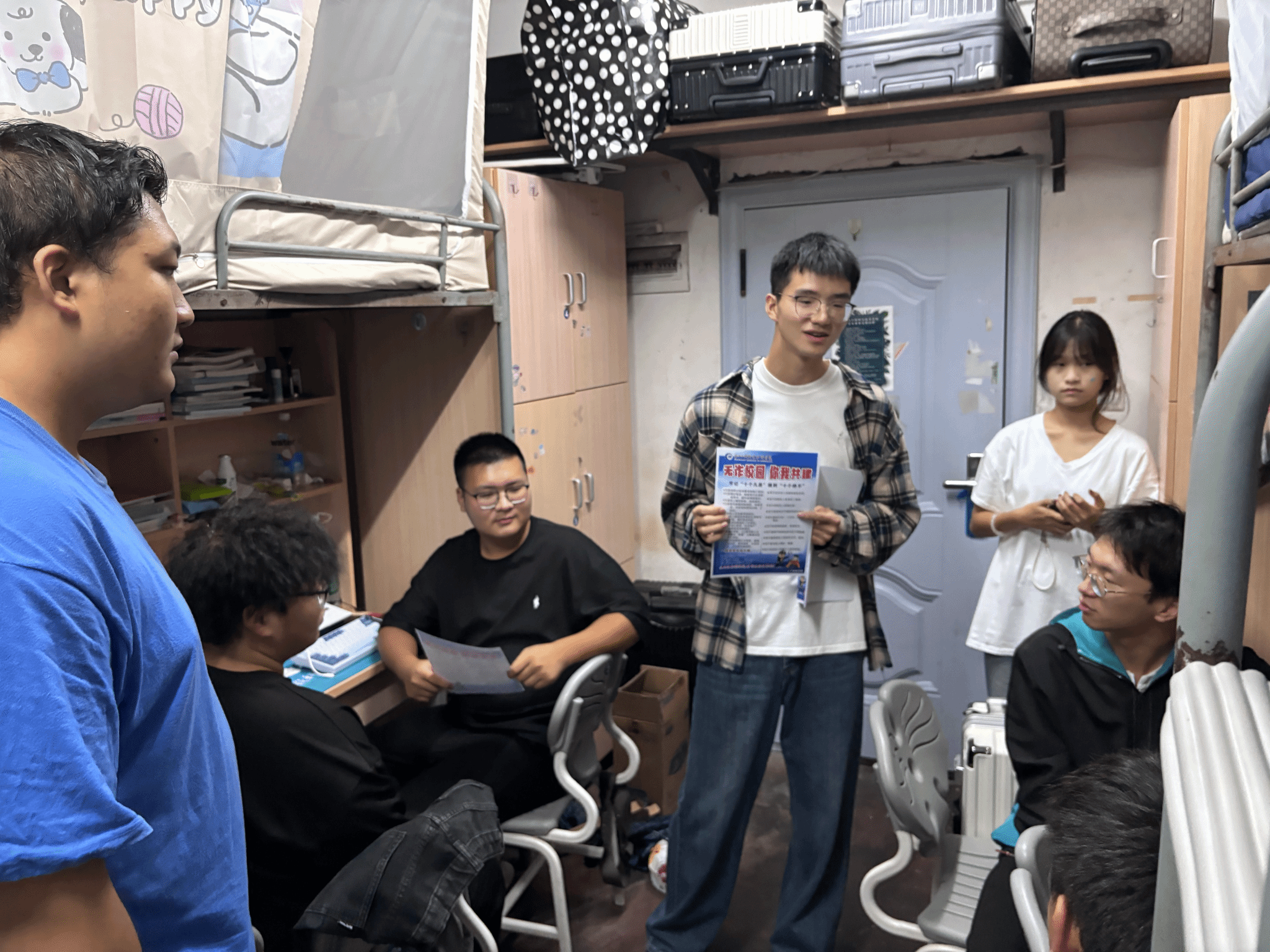 活动前,学院结合学生宿舍分布情况进行周密部署,将全体辅导员与学生干部进行分组,每组由一名辅导员带队,负责指定区域宿舍的宣传工作,确保宣传全覆盖、无死角。