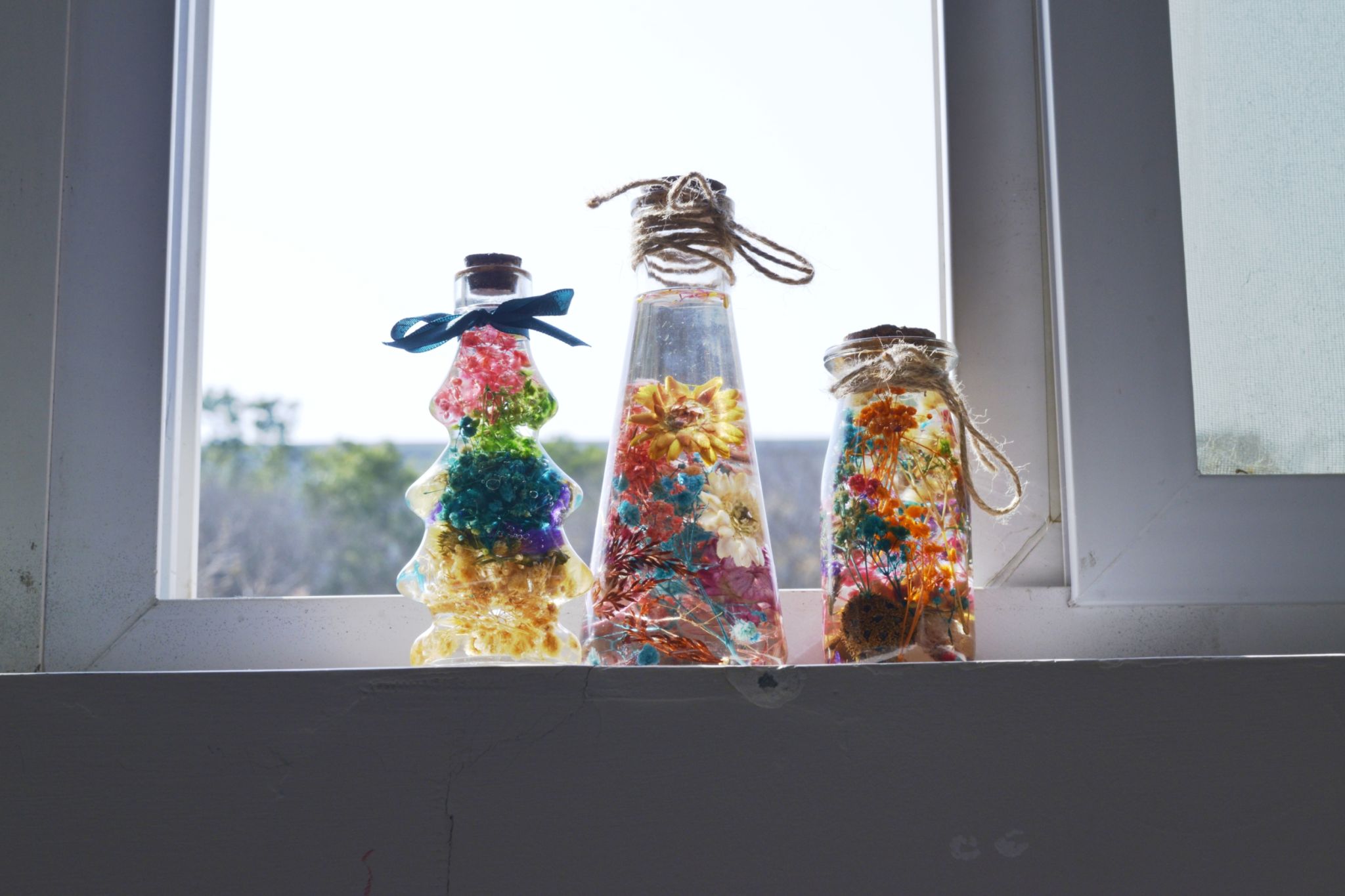 接下来,杨小玉引导同学们先从各项工作和学习生活中抽离出来,在舒缓的背景音乐中放松身心,专注于当下。紧接着,开启浮游花瓶DIY创意体验,同学们挑选心仪的花瓶与花材,经过精心的修剪、巧妙的搭配、细致的装瓶与调整,再缓缓注入浮游花瓶专用油,最后以木塞封存,丝带点缀,并为各自的作品命名,每一件作品都闪耀着独一无二的创意光芒。